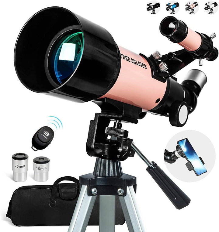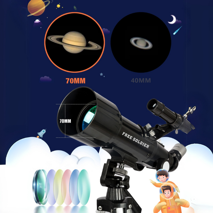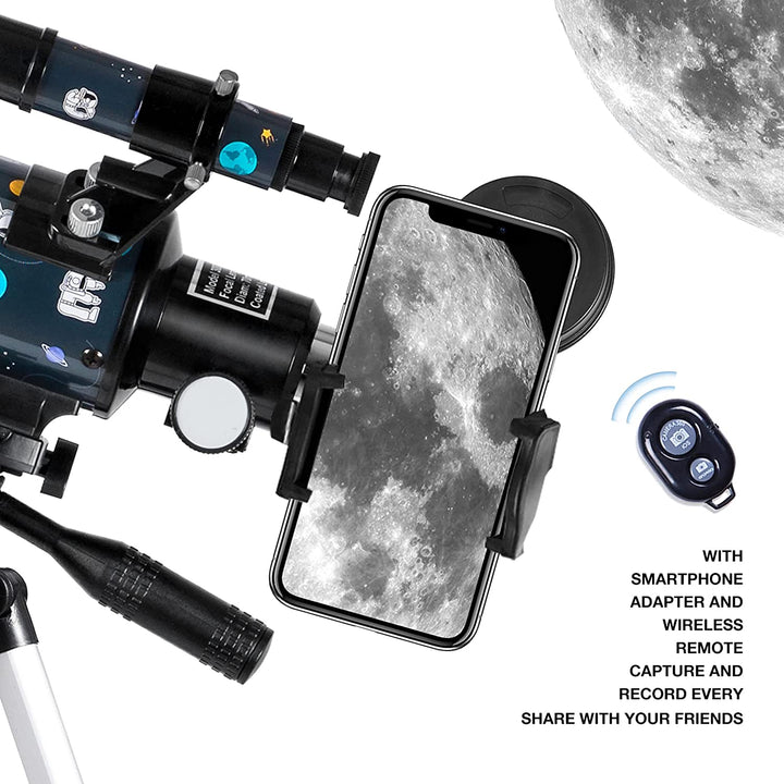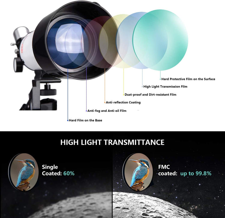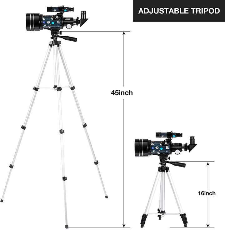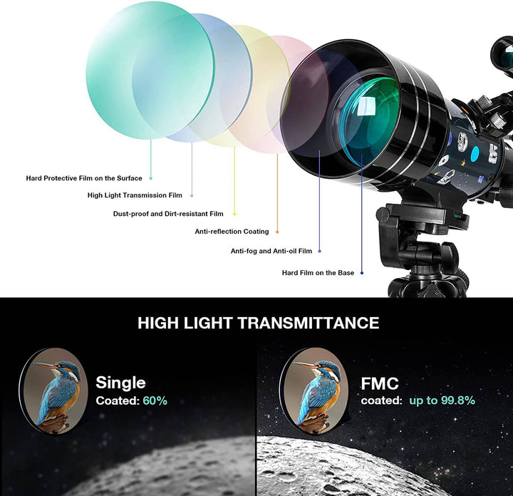 - ♥【Astronomy Gift with Superior Optics】The telescope for viewing planets has a focal length of 400mm and is equipped with a 70mm aperture, a fully coated optics glass lens with high transmission coatings that creates stunning images and protects your eyes. A perfect telescope for astronomers to explore stars and the moon.