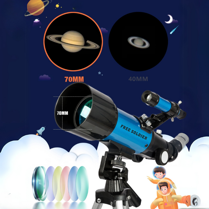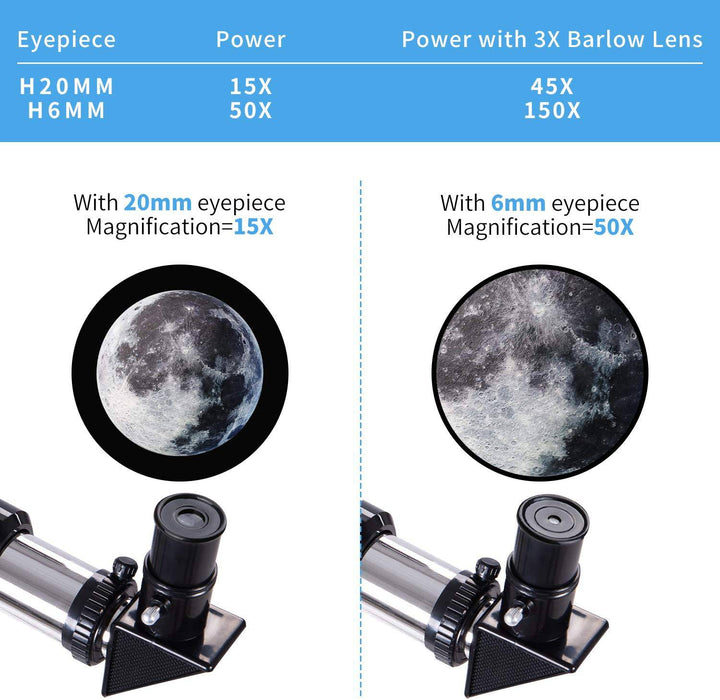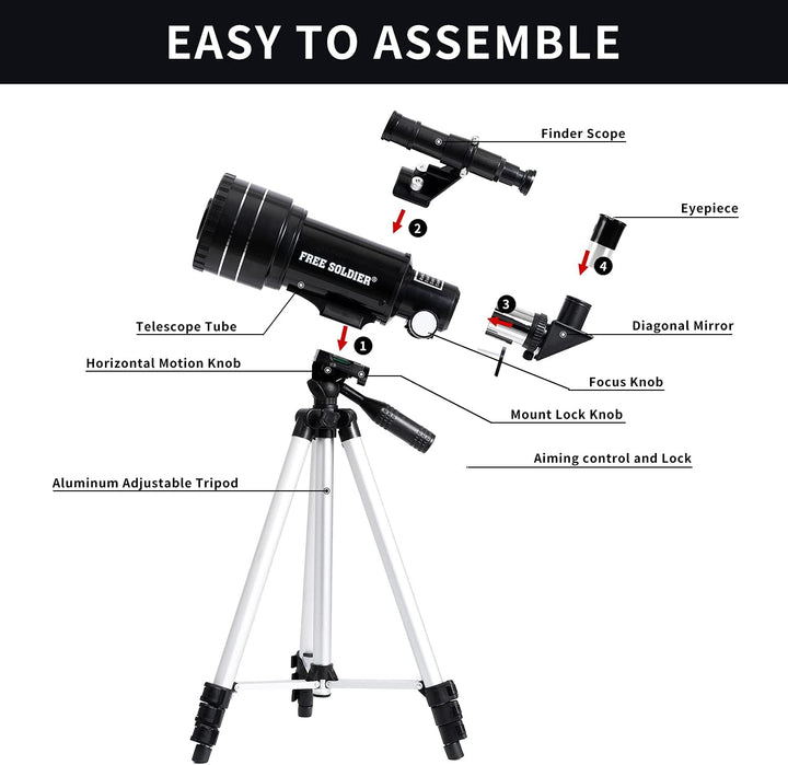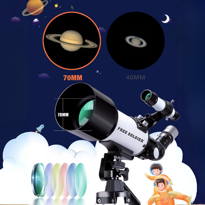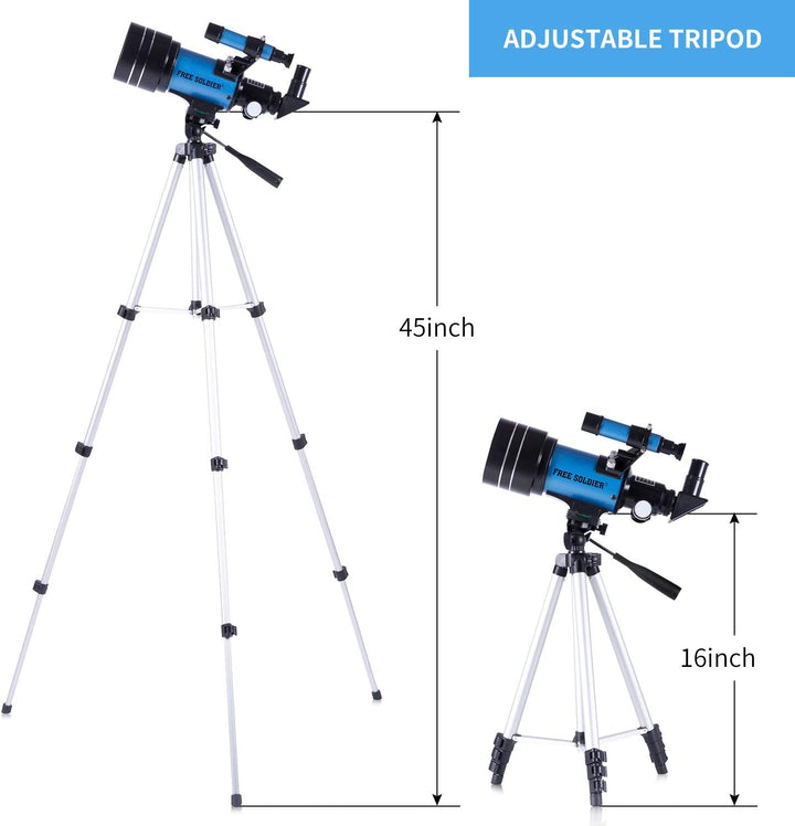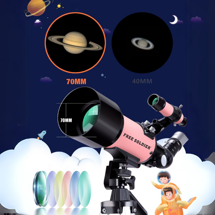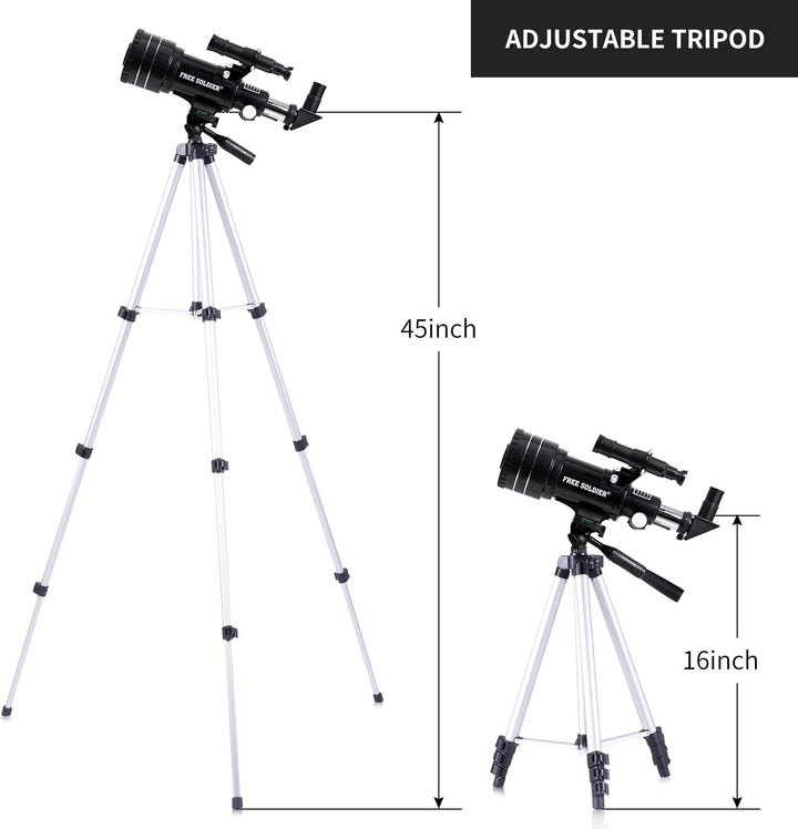 - ♥【Astronomy Gift with Superior Optics】The telescope for viewing planets has a focal length of 400mm and is equipped with a 70mm aperture, a fully coated optics glass lens with high transmission coatings that creates stunning images and protects your eyes. A perfect telescope for astronomers to explore stars and the moon.