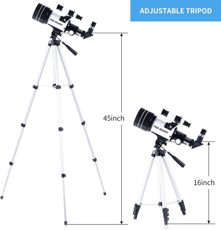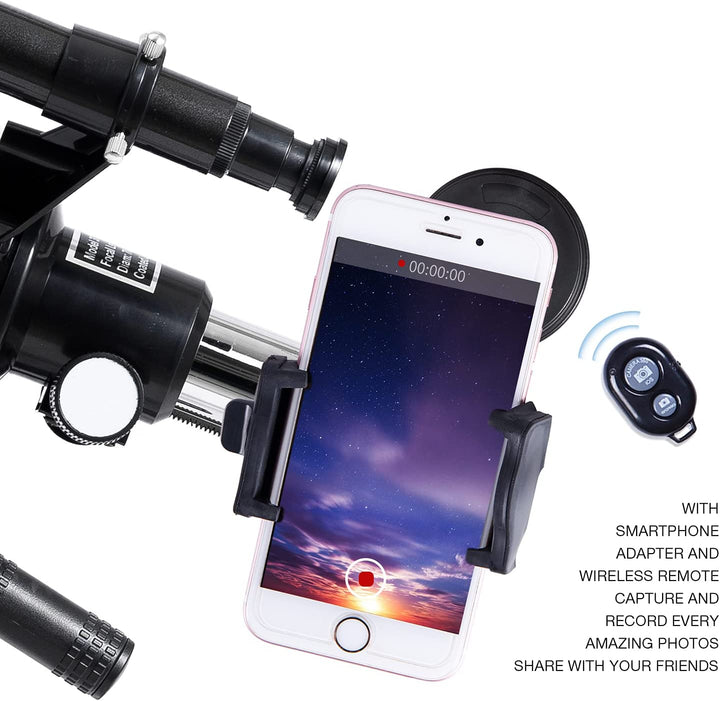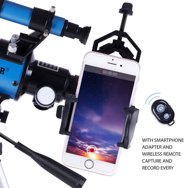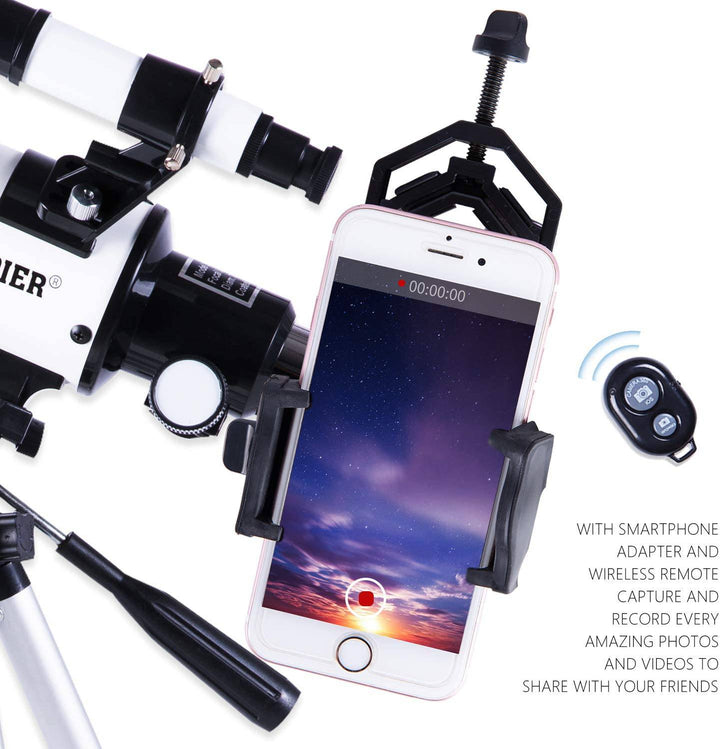 - ♥【Smart Phone Adapter and Wireless Remote and Tripod】The best telescopes for beginners set include one smart phone adapter and one wireless camera remote to explore the nature of the world easily through the screen and take amazing celestial images. This telescope for astronomy beginners kit also includes an adjustable tripod. You can adjust the tripod according to your height.