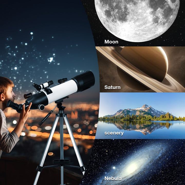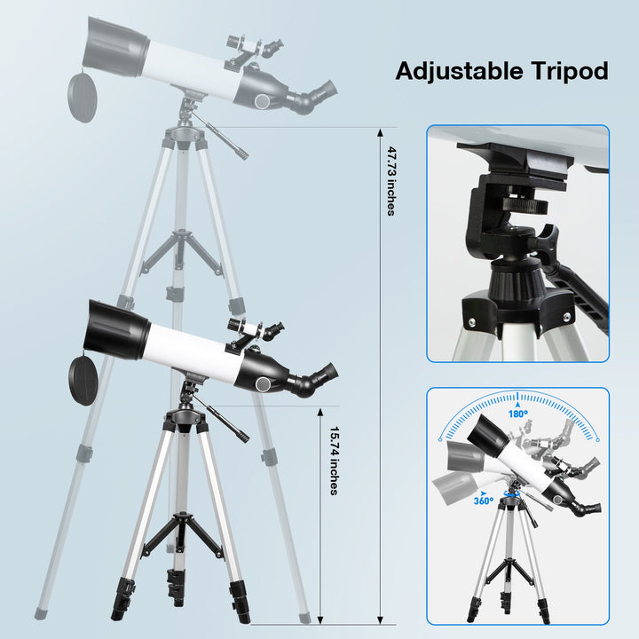 - ★【Adjustable Tripod & 360° Rotating Zenith Lens】Provides a stable and upgraded adjustable tripod, allowing a variety of different viewing positions, bringing you an excellent observation experience. The features that make the 80mm telescope stand out are the patented 360° Rotating Zenith Lens, allowing adults and kids to watch more comfortably. A surprise Father's Day gift from wife daughter son!