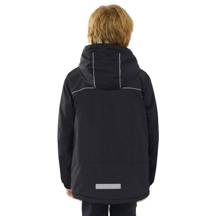 - SECURITY DESIGN: Reflective strips on back and hood of kids snowboarding jacket, provide excellent safety and protection for children while playing. Boys winter jackets Personalized Name Label, you can contact information. The chin safety guard at the top of ski boys jacket zipper prevent kids getting hurt by the zip.