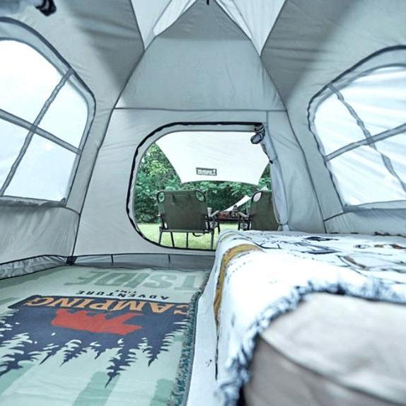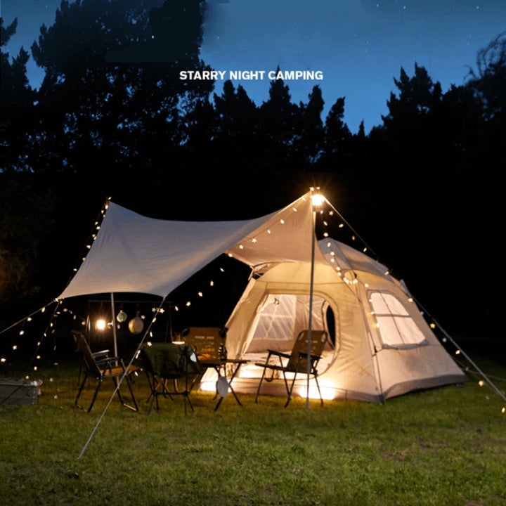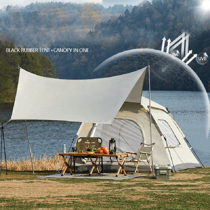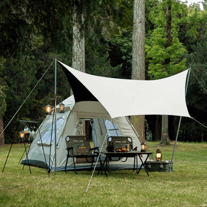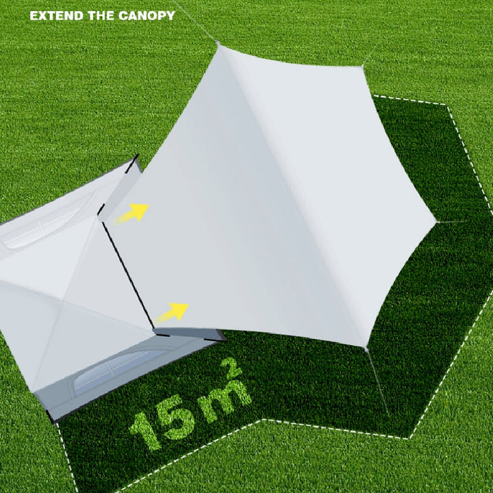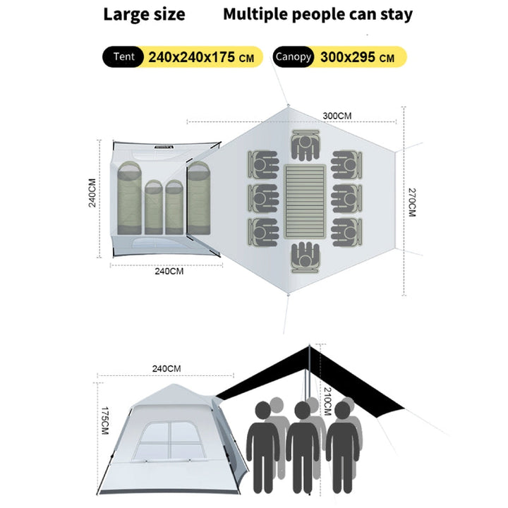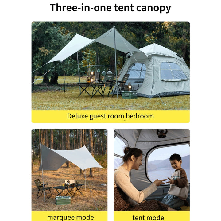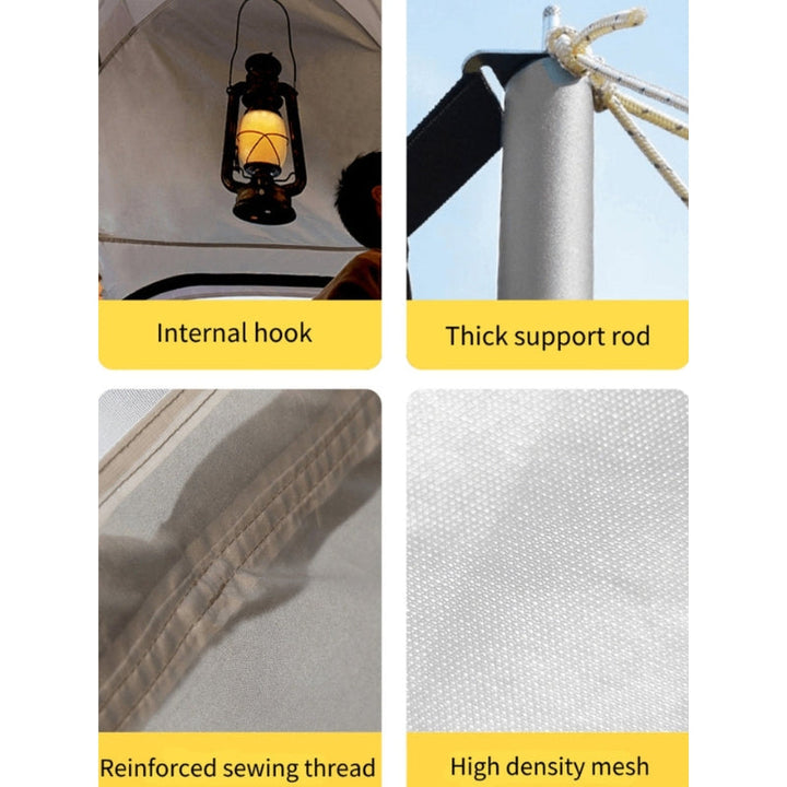 This Vinyl Tent & Tarp 2 in 1 offers ample space without the need to bend over. It features reinforced seams and high-density mesh to prevent mosquitoes and insects. Convenient storage and portability make it easy to transport. The tent is equipped with a strong wind-resistant frame and reinforced composite treatment. It boasts a 3000+mm PU waterproof rating with 210D Oxford fabric, providing excellent UV protection with a UPF50+ rating.