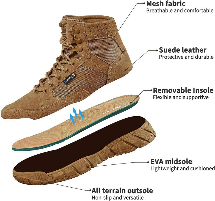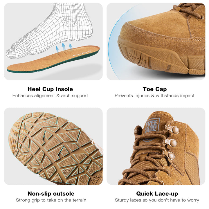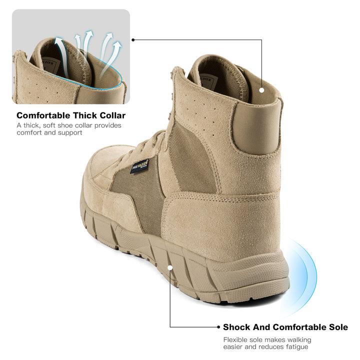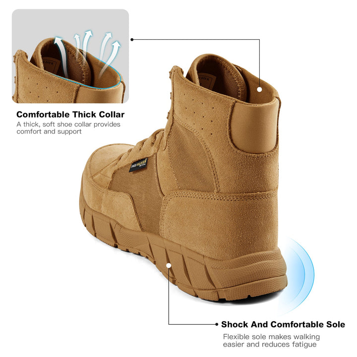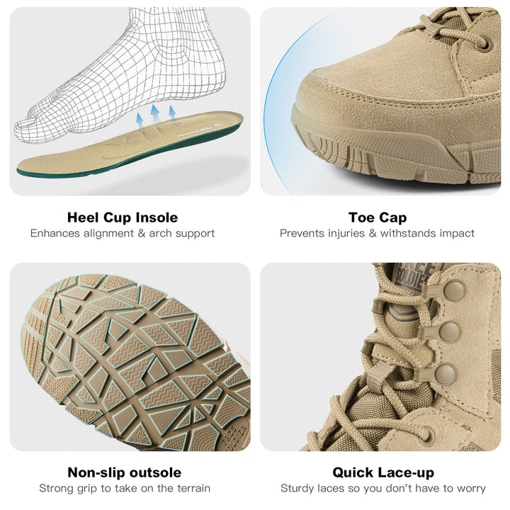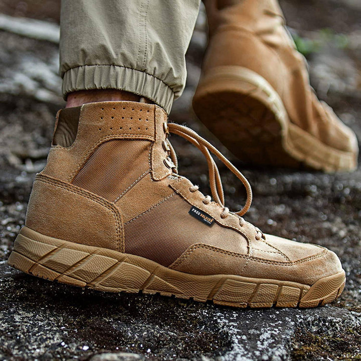 Crafted with suede leather and tough 1012D Cordura fabric, these boots resist scratches and wear. The EVA midsole offers lightweight cushioning, while the all-terrain outsole delivers powerful grip with a geometrical tread design. Reinforced toe caps and heels ensure full protection with enhanced ankle support, perfect for tactical missions, hiking, motorcycle riding, and more.