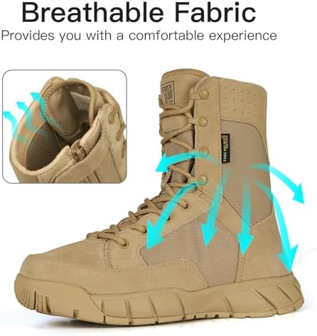 FREESOLDIER Men's 8" Side-Zip Tactical Boots – Lightweight, Durable & All-Terrain