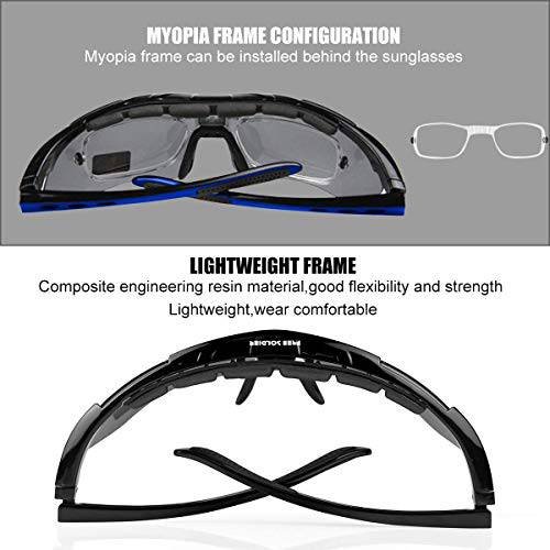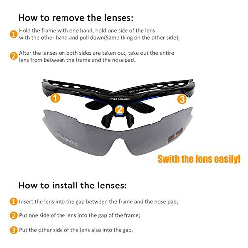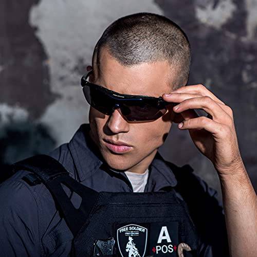 Premium frame design and materials: technical composite resin frame, 5 sets of high standard PC lenses, 100% UV 400 protective coating. The frame is lightweight, flexible, durable, non-slip, comfortable and offers good coverage for a round face. The lenses are lightweight, clear, anti-fog, waterproof, shatterproof, anti-glare, UV resistant, explosion-proof and impact resistant. Well made and of good quality. 5 replaceable lenses. Tactical military goggles with a wide range of different lenses for different lighting conditions. The black lenses are polarised for driving and other activities. The Revo multi-coloured lenses are perfect for all weather conditions. The yellow lenses are ideal for night activities. The transparent ones are ideal for rainy or cloudy days. The light brown lenses with 7 coatings are suitable for all weather conditions. Accessories: The sports glasses case comes with 5 interchangeable lenses, 1 x sports glasses frame, 1 x myopia frame, 1 x motion head strap, 1 x glasses strap, 1 x lens pocket, 1 x lens cloth and 1 x test card. Only the black lenses are polarised. - Free Soldier cycling sunglasses can prevent sweat, wind, sand, dust, insects, water and dirt from getting into the eyes. Suitable for outdoor sports such as cycling, motorcycling, running, golf, skiing, riding, driving, racing, fishing, climbing, hiking, travelling, trekking etc.. The frame is very tough with adjustable nose pads. The glasses fit your head securely so you don't have to worry about them falling off when you’re cycling.