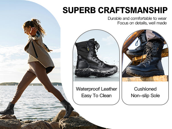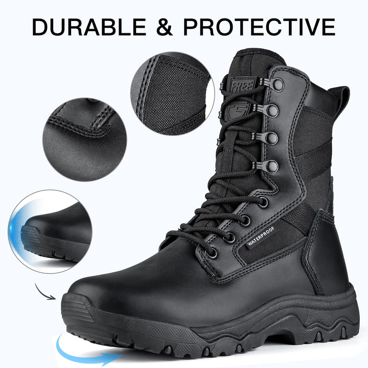 Take on any challenge with the FREESOLDIER Women's 8-Inch Black Leather Boots. Shop now and experience the perfect blend of strength, style, and comfort!