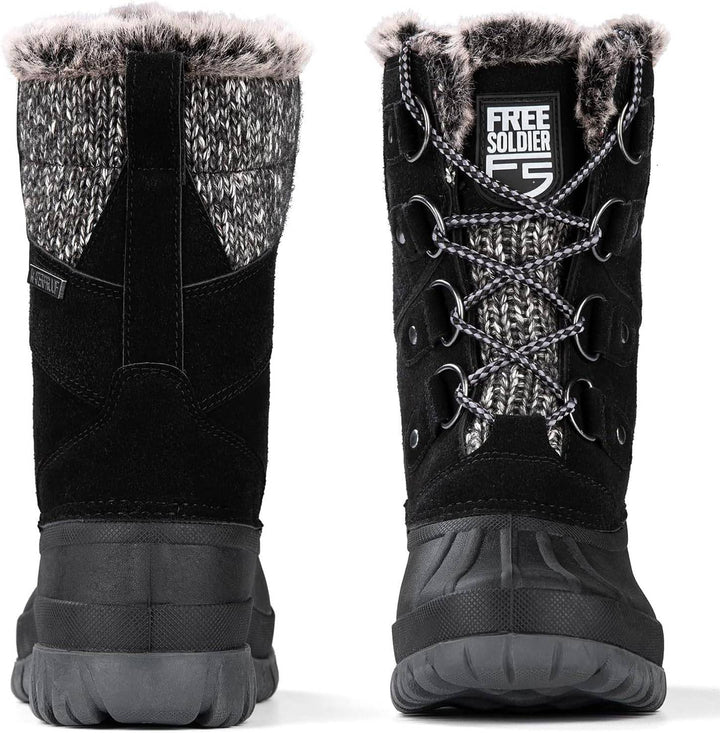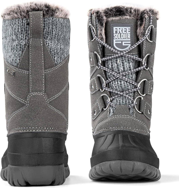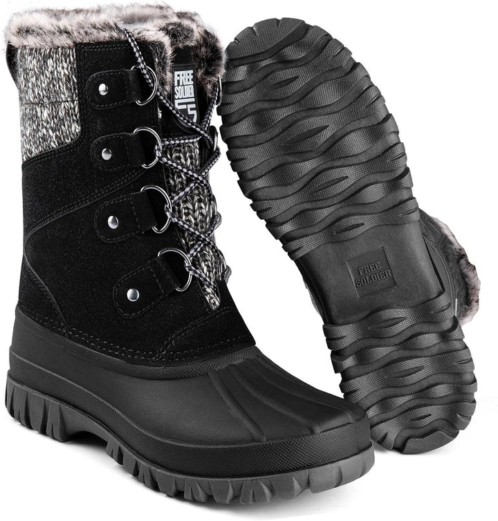 Ideal Indoor & Outdoor Snow Boots for Women: If you prefer a flexible snow boot with a relaxed fit, the Free Soldier womens winter boot is an excellent choice, since they’re soft and non-restrictive, you can wear them all day. TIPS: If you plan on wearing thick socks with these boots, you may need to order up a half size.