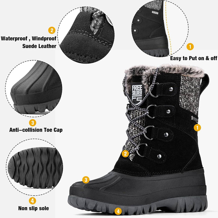 - Womens Snow Boots Waterproof Insulated: The waterproof and breathable upper fabric of these winter boots keeps your feet dry in winter, and the lightweight rubber sole provides great traction in wet, snowy conditions
